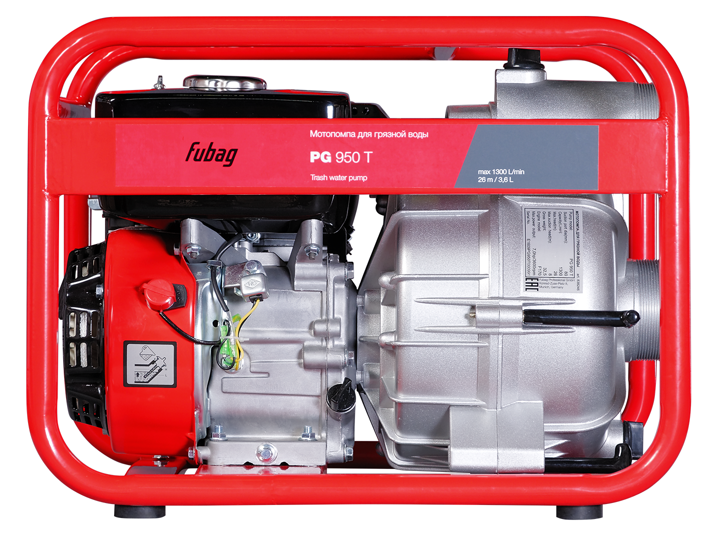 Характеристики Бензиновая мотопомпа FUBAG PG 950 T для сильнозагрязненной воды